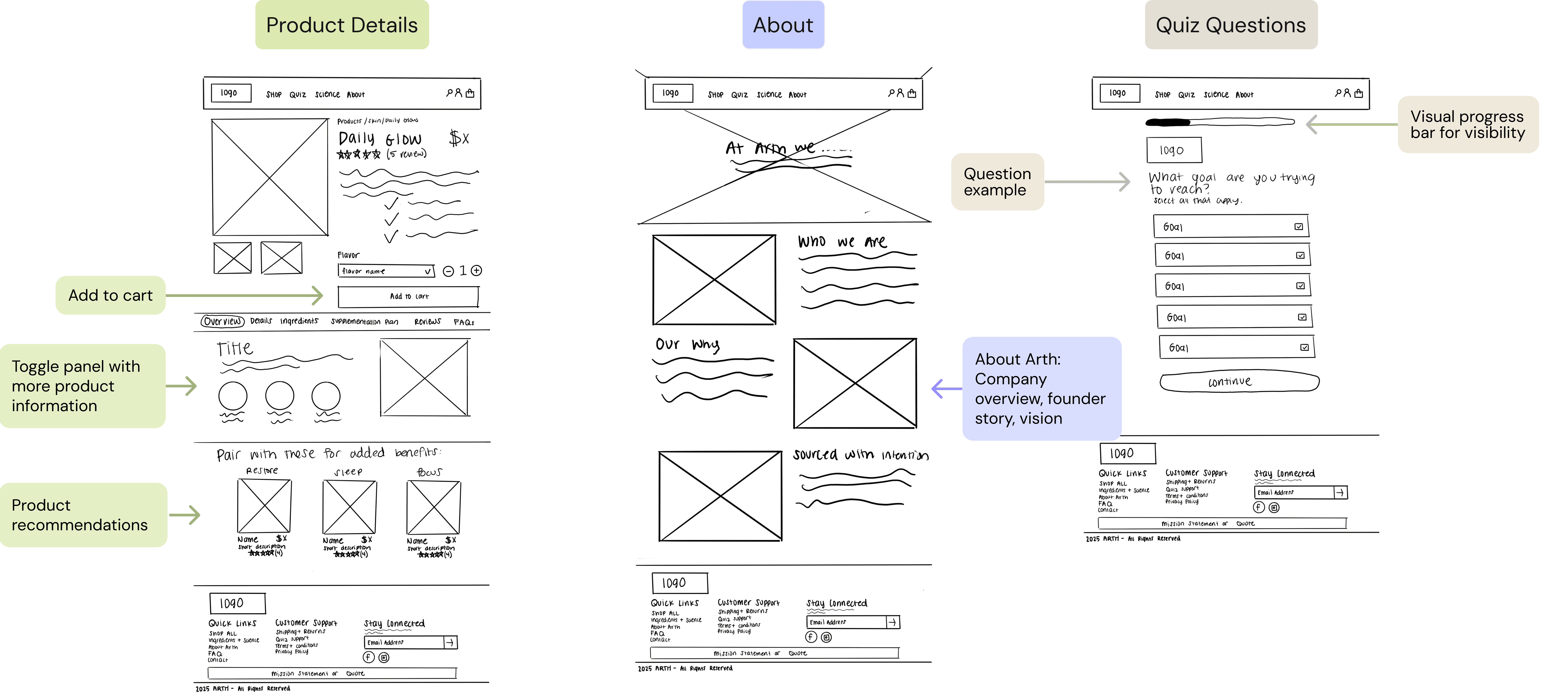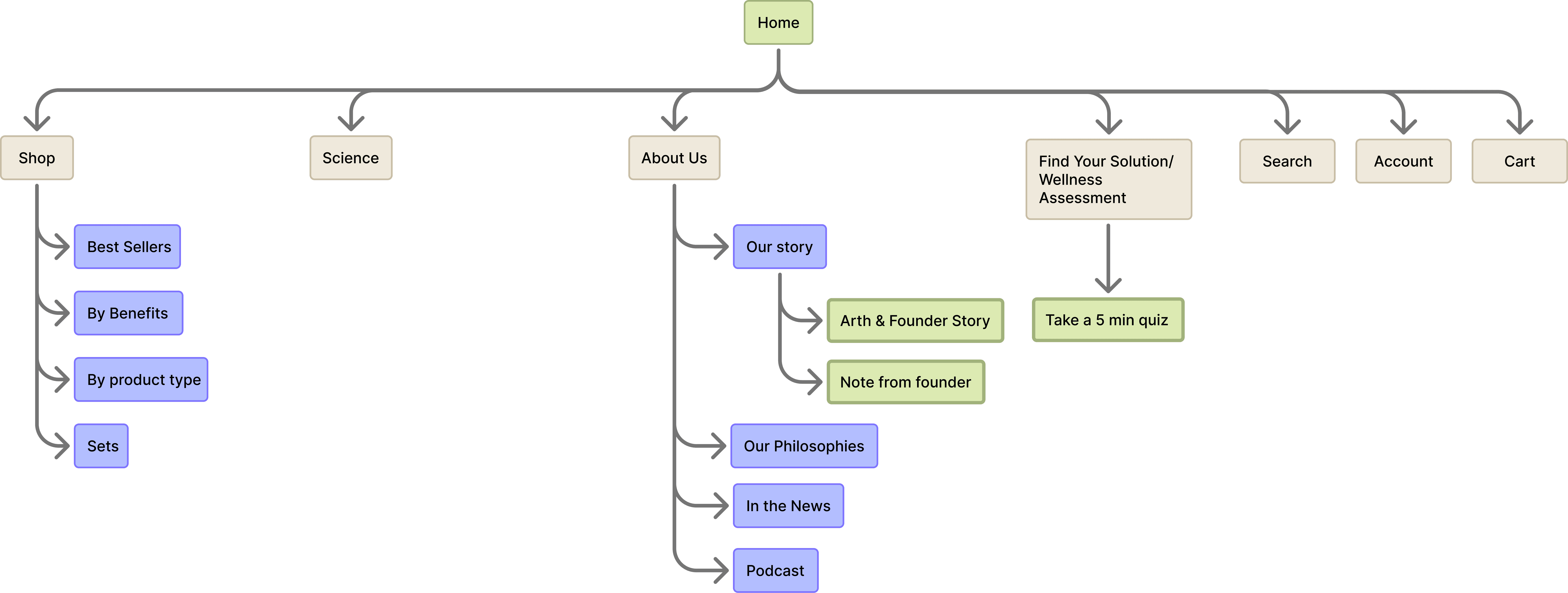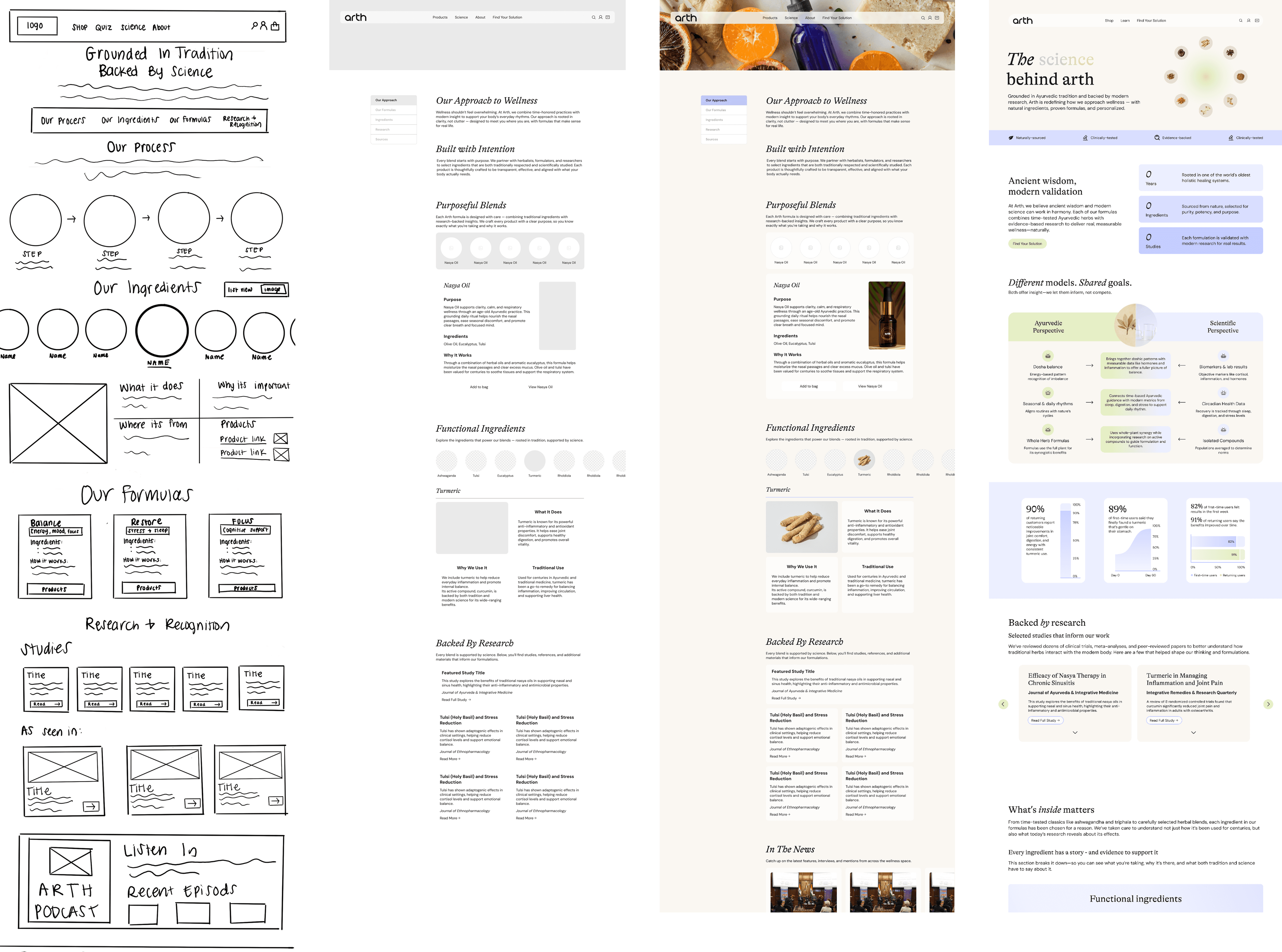 At the time, Arth’s site lacked common wellness features like quizzes, refills, or educational layers—but we saw this as a strategic opportunity. Starting fresh allowed us to design intentionally, aligning every feature with Arth’s identity: science-backed, tradition-rooted, and user-centered.