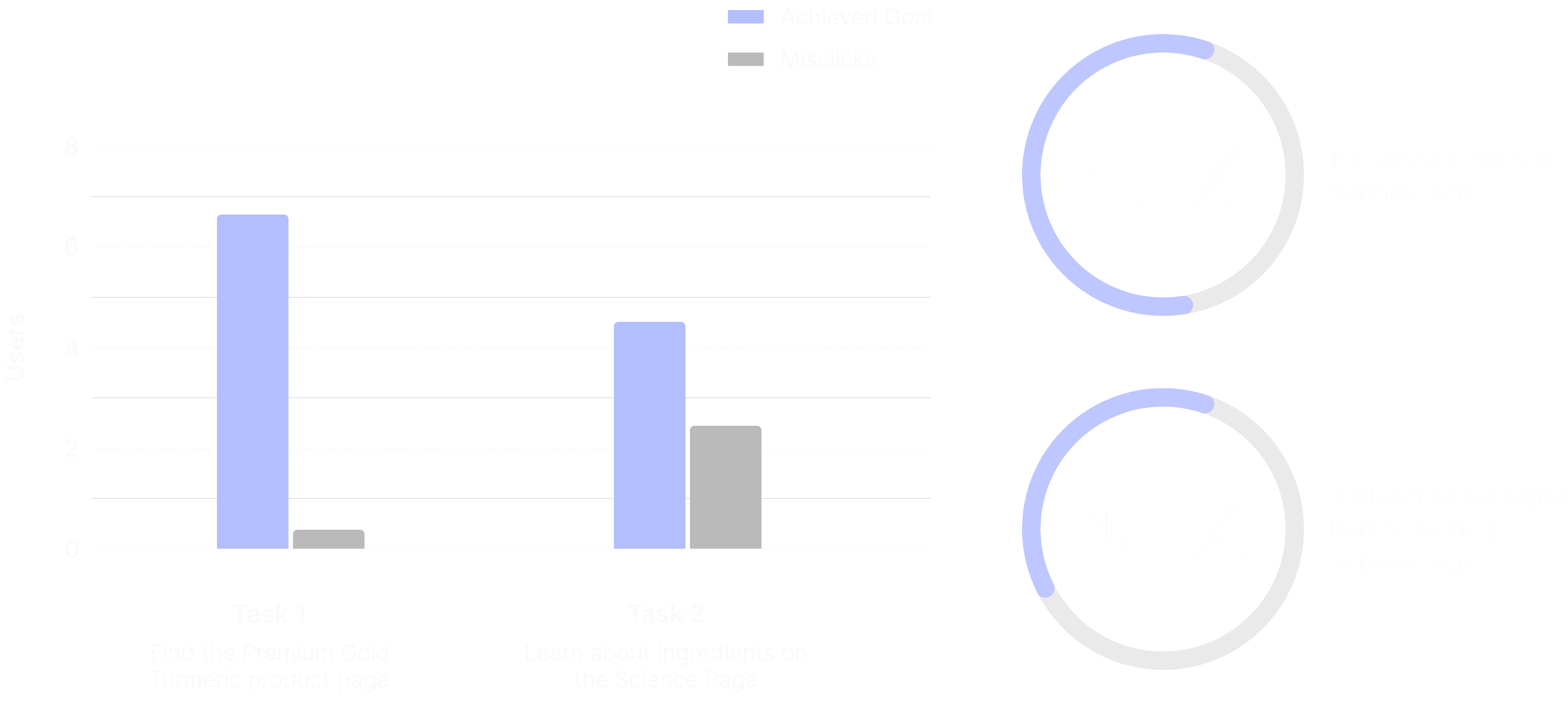 Task 1 saw a 100% success rate with minimal friction. However, Task 2 revealed a gap: 60% found the Science Page directly, while 40% took extra steps, indicating that the content was useful but not always easy to find.